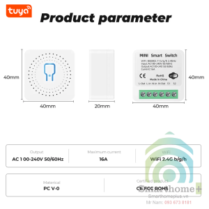 Module Wifi Công Suất Lớn 16A Đo Công Suất Tiêu Thụ Điện Tuya SMT-1CHv2